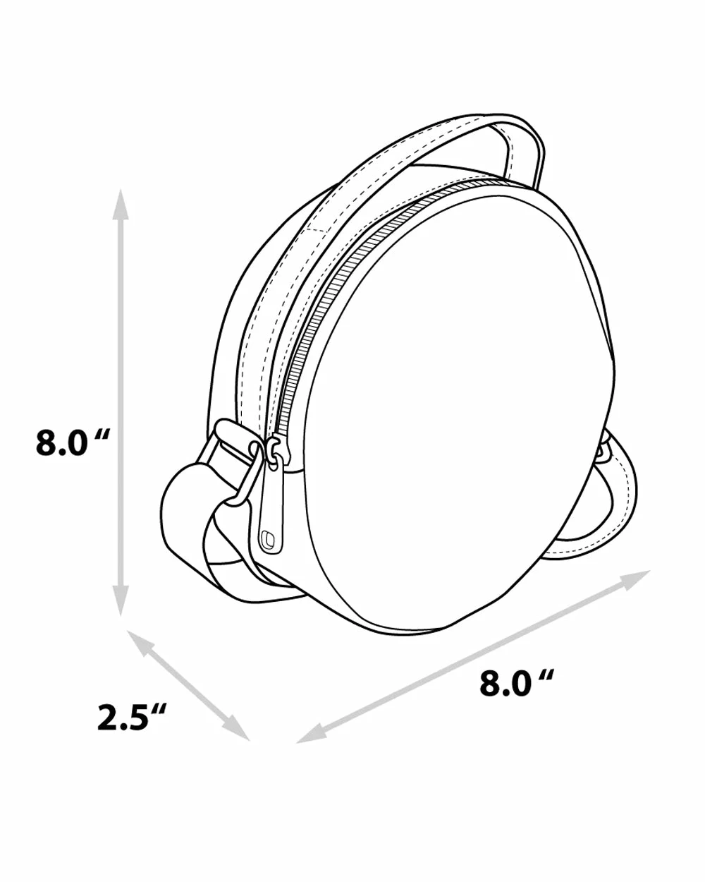 - It measures 8.0 x 8.0 x 2.5 Inches and features space to carry all your favorite things including phone, wallet, keys, etc.