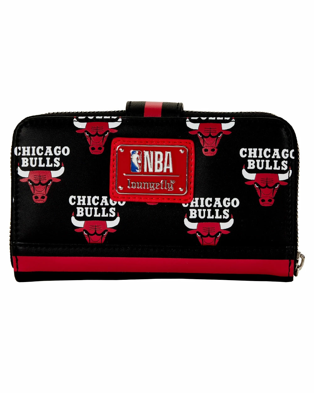 Charge towards the playoffs and show your team spirit with this NBA Chicago Bulls Logo Zip Around Wallet. This vegan leather (polyurethane) zip around wallet carries a motif in red of the iconic Chicago Bulls mascot, with its look of determination and tinged horns. A black background surrounds the printed motif.
